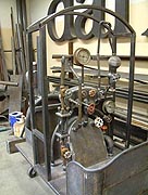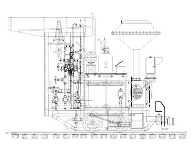 ![]() ![]() This is semi-amazing for a prototype... click on any image to enlarge. The Santos Brothers in Central California, Jack & Robert, are building two Whitby Locos in approximately 2.5" scale... with the Whitby, its always approximately:). They will both be electric steam outline locos. That is, they will look like steamers, but run on battery power electric motors. When they told us what they were planning, we sent them every illustration we had. They even visited (to meet Whitby in person), and spent hours photographing the little loco from every angle. Bless their hearts, they made full size (2.5" scale) mechanical drawings, and delivered them to us in Santa Clara at the National Narrow Gauge Convention.