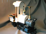 ![]() ![]() ![]() . . . ![]() Follow this link (or click on the photo below) to see Jack Bodenmann's incredible live steam coal burning 'distant cousin' of The Whitby, No. 9! ![]() Whistle and bell notwithstanding, here's an offspring with all the whistles and bells. Rowan has incorporated elements of almost every Whitby ever, including a few 'relations' that many do not know about! Look closely and you will see influences from Bruce Bate's Birdwater & Raspberry, Roland Emmit's cartoons, Disney's Casey Jones Jr., Dan Sawatzky's cariacture, A.W.N.U.T.S., and even a tie to the Whitby's original concept... as a Christmas train. In true Rowan style, this is a truly unique adaptation, yet it captures the spirit of the Whitby as well as any. Rowan pretty much builds as he imagines, his building style allows him to create models almost as soon as he thinks of them! ![]() ![]() ![]() ![]() ![]() ![]() ![]() |