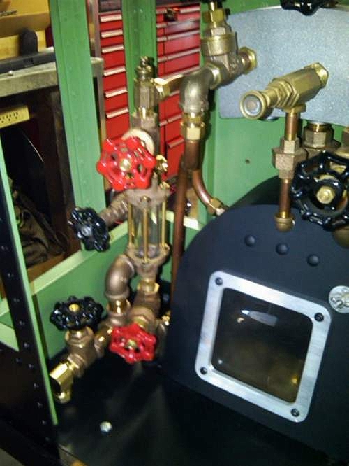 Another cab view, this time, the right side with water sight glass and associated plumbing. The plumbing on this electric steam outline locomotive is substantial, very believable, and likely fairly expensive (for eye candy:). Sure would love to build an electric fire in that firebox!